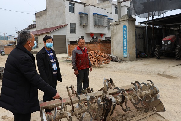 在房县最大的农机经销商都全农机有限责任公司的仓库内,春耕备耕农机具已经整装待发,将活跃在全县近二十个乡镇的田间地头。该公司负责人徐燕卿说:“农业机械替代人力是农业发展的一大趋势。现在春耕在即,我们不仅销售农机,更将配套的农机保修、维修服务跟上,更好地服务于农业生产的各个环节。”在参观零件销售大厅和3个仓库后,李敬东同徐燕卿就农机高效服务示范区建设进行了有效沟通,达成了初步共识:未来将以燕卿农机合作社为基础,在房县西南片区建立一个以农机销售、维修、农机作业服务等一体的综合服务示范区。该区建成后将至少辐射西南片区九个乡镇。