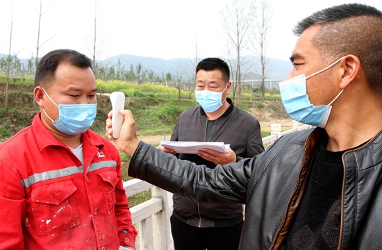 房县推进水利工程复工复产,严格工人复岗关,对上岗人员进行登记、查看健康码绿码,做到“建档立卡”“一人一档”。每天上午、下午分别对工人测量体温,对办公生活场所、工程器械进行日消杀处理,实行分时就餐,严防输入病例,杜绝“带病”上岗。