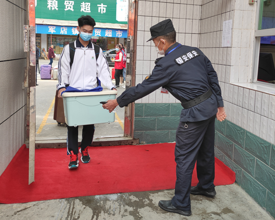 春暖花开季,学习正当时,经历了加长版寒假,师生们期盼已久的日子终于来临,5月6日,房县二中高三学生正式开学复课。早上七点半,公安特警、行政值班人员、医生、学校保安人员、教师志愿者已经到岗,严阵以待,迎接学子的到来。相距1米排队等候、门口站立、体温检测、手部脚底行李消毒、 信息登记……在负责老师的引导下,各位学子有序完成各项规定程序,确认体温正常、口罩佩戴正确、消毒到位后,大家才依次进入久违的校园,整个入校过程井然有序。校门口铺设了排队站点、间隔1米标志的黄线、师生入校专用通道、体温检测点、放置废弃口罩专用垃圾箱。为避免校门***通拥挤、学生和家长大量聚集等情况,公安特警提前在距离校门口一里之外的路口放置标志桶,并引导学生返校车辆单向通行避免拥堵;要求学生按照乡镇区域划分分批报到;家长一律不准进入校园,由教师志愿者帮助学生搬进行李进入校园。