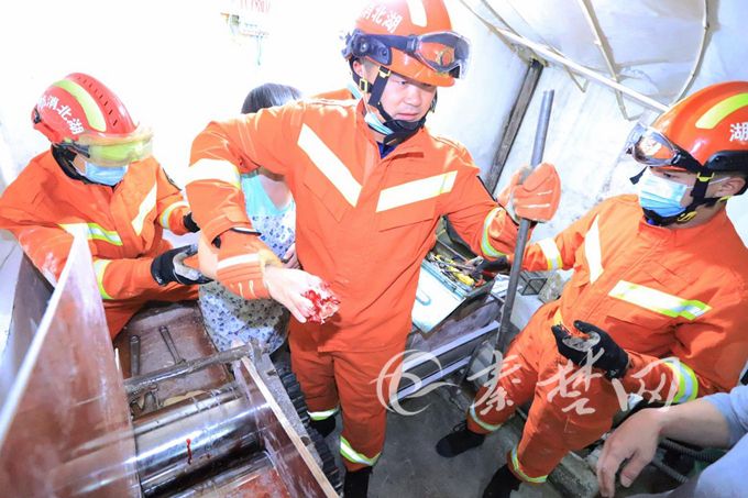 今日房县网讯 特约记者 徐源祥 报道:11日7时52分,城关镇丁字街一鲜面馆内发生一起意外事故,一女子在操作压面机的过程中,手指不慎搅进机器内,被死死“咬”住。危急时刻,十堰消防赶往现场展开救援,仅用两分钟时间,就拆卸机器,救出被困者。
