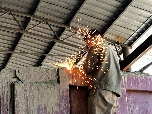 5月12号,记者在305省道党湾检查点看到,执法人员正在对一辆车牌号为 皖S 2H869 的大货车违规加装的高厢板进行电焊拆除。据工作人员介绍,经过改装之后,这辆大货车实际载货量可达到60吨,存在着巨大的交通安全隐患。