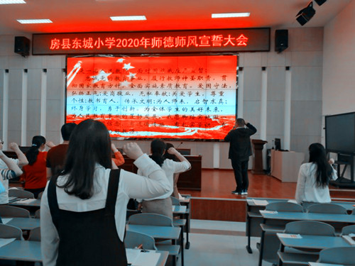 今日房县网讯 通讯员李英 报道: “我是一名人民教师,面对国旗我庄严宣暂:忠诚党的教育事业,履行教师神圣职责,贯彻国家教育方针,全面实施素质教育……”为进一步加强教师师德师风建设,5月15日下午,房县东城小学的阶梯教室里,该校全体教职员工高举右手、握紧拳头,齐声宣读教师师德师风誓词。该校教职员工用宣誓的形式表达自己对教育的庄严承诺。