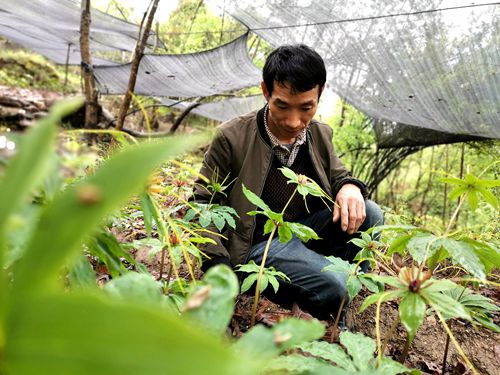 七叶一枝花属于一种名贵的中药材,具有抗癌、抗肿瘤、治蛇毒、止痛、止血、治胃病等多种医疗用途。七叶一枝花从栽种到成熟开挖,一般需要五至七年,市场价格比较稳定。2015年,袁文军从山上采集一些野生的种苗,又从外地购进一批种苗,试种了三分地。他希望自已的付出能够有所回报。
