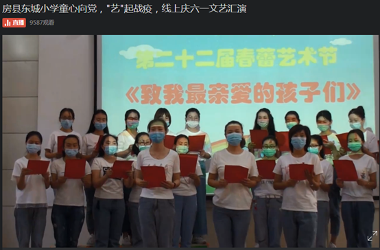 今日房县网讯 通讯员 王厚平 唐自力 报道:弹去五月的风尘,迎来六月的阳光,孩子们的心像怒放的花朵,荡起一片欢乐的海洋。为庆祝第70个国际六一儿童节,6月1日,房县实验小学、东城小学、实验学校、军店小学、天明小学等学校师生相聚云端联合创作、组织别开生面的线上六一儿童节庆祝活动。