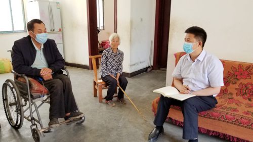 家住晓阳村的贫困户戢运俊,因下肢瘫痪丧失劳动力,家里还有82岁的老母亲,女儿在城里打工,他平时还坚持找一些力所能及的事来做。纪道清到贫困户戢运俊家中走访,详细询问残疾人补贴、失地农民保险、低保等政策落实情况,帮他们家算起收入账。纪道清对戢运俊身残志坚的精神表示肯定,并鼓励他要乐观向上,自力更生,把日子越过越好。