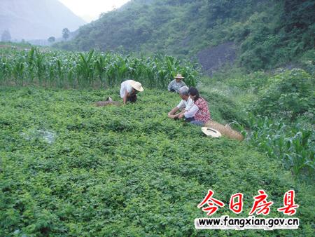 雨过初晴,野人谷镇桥上村的农民忙着采摘绞股蓝,据了解,今年该镇的2000亩绞股蓝长势喜人,行情看好,仅此一项将为农民带来收入近2000万元。   (向远成 摄)