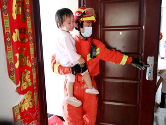 据了解,家长出门拿东西,不料门被仅两岁半的小女孩贪玩反锁,独自困在家中不断哭泣。由于担心孩子在家发生意外,家长立即报警求助。消防员到场后发现,家长正焦急地在大门外等候,隔着大门都能听到屋内孩子的哭声。由于该住户居民住在13层,消防员无法通过楼外爬进屋中,经过协商,户主同意对厨房窗户进行破拆。经过10分钟的救援,成功将小孩救出。