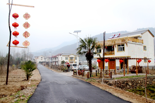 (三)修复生态环境,实现村美目标。突出乡村特色,坚持把生态建设作为精准扶贫的重要内容。坚持彰显突出片区的青山、绿水、茶园、花廊、民居五大环境要素。稳步推进马尾河原生态修复工程;沿铺三路主道栽植了1万株银杏、紫薇、海棠、楠树和2万株樱桃、石榴、柿子等观光果树;结合危房改造、扶贫搬迁,以徽派风格为基调,融入乡土元素和茶文化元素,高标准改造完成了40户“白墙、灰瓦、大屋顶、木窗栏”荆楚风格的民居;在铺沟至三岔村通村公路旁栽植鸢尾、黄花菜、月季等8000㎡;茶园路观光带栽植连翘1000株;小叶女贞、樱桃、银杏等苗木5000株。