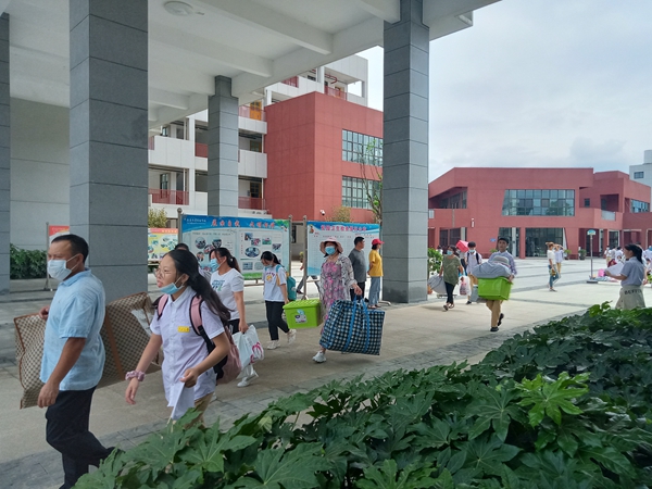 学生在家长的陪同下安全离校