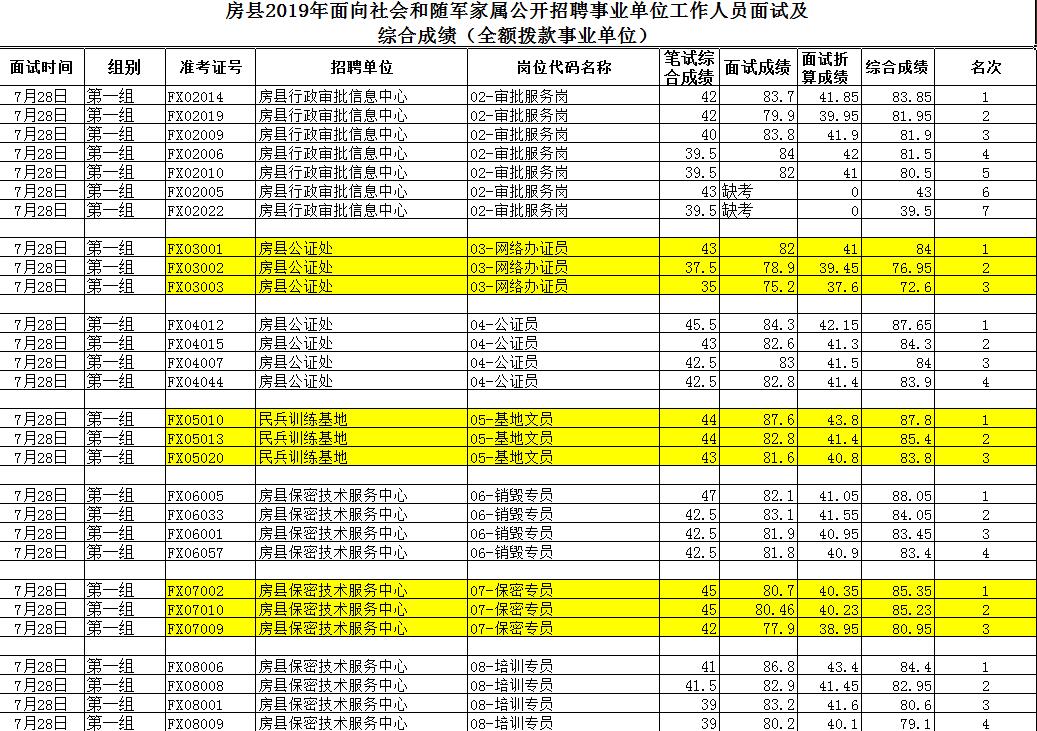 根据《房县2019年面向社会和随军家属公开招聘事业单位工作人员公告》,现将全额拨款事业单位岗位考生面试及综合成绩公告如下: