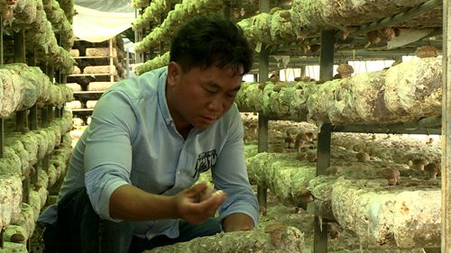 “这是我今年种的夏菇,接近5万袋,现在已经初步结鲜菇,昨天开始拣的,才开始长,拣了接近500斤左右,现在市场价格是5.5元一斤,我大部分卖到沙河乡勤发富专业合作社。”