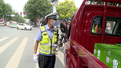 高温天气下的道路交通安全形势更为严峻,行人不走人行道、电瓶车抢占道路的现象频发。在站岗亭、十字路口,交警们及时劝导行人、非机动车遵守交通法规文明通行。有11年工作经验的交警李俊涛通过镜头提醒市民:现在天气比较炎热,开车一定要记好安全带,驾驶摩托车、电动车请一定带好安全头盔,行人过斑马线一定要看人行横道红绿灯,不要横穿马路、翻越护栏,机动车在斑马线要主动避让行人,请大家都遵守交通规则、安全文明出行。