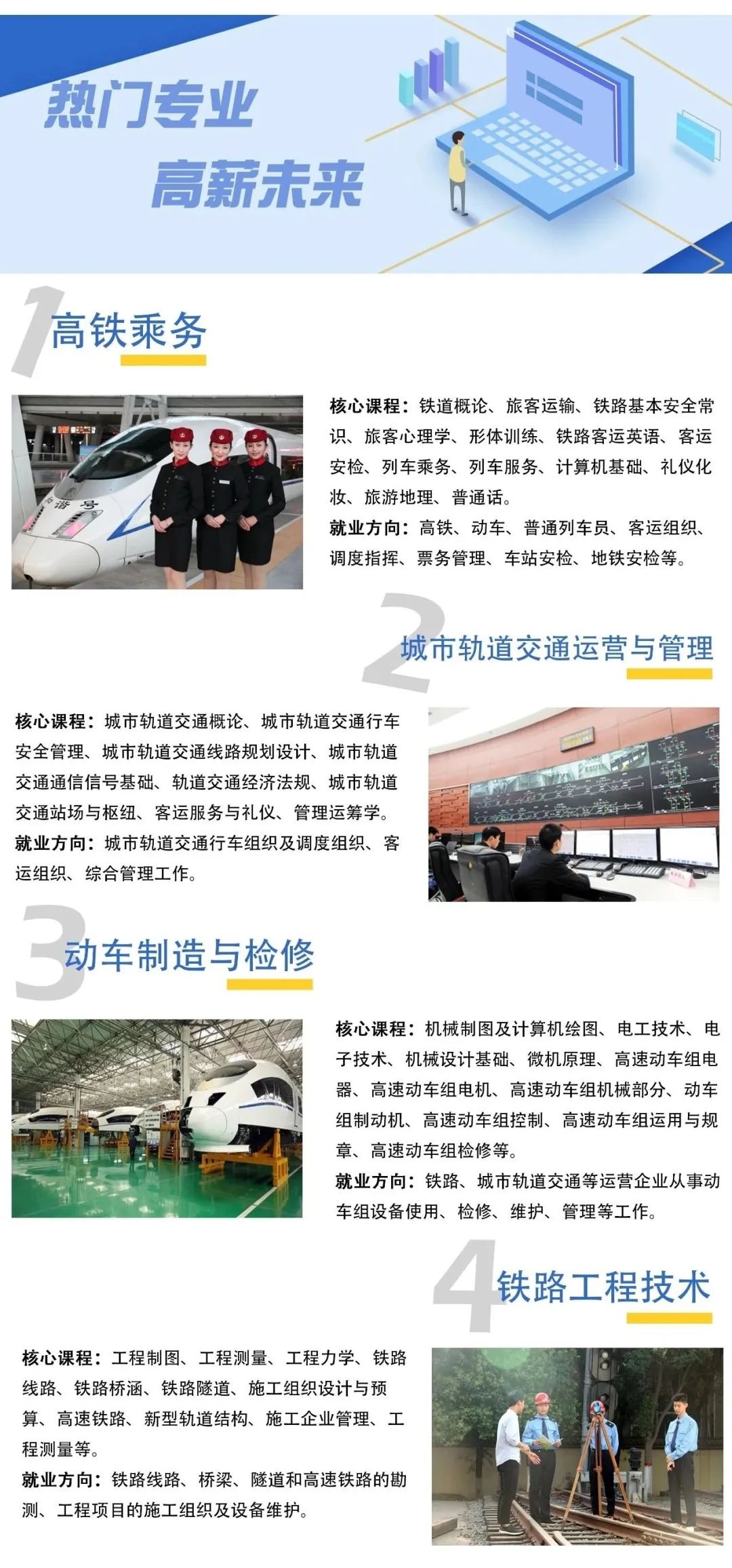 高铁乘务城市轨道交通运营与管理学前教育