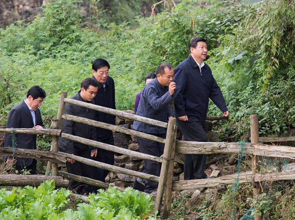2013年11月3日下午,习近平在湘西土家族苗族自治州花垣县排碧乡十八洞村看望乡亲,调研扶贫开发工作。新华社记者王晔摄