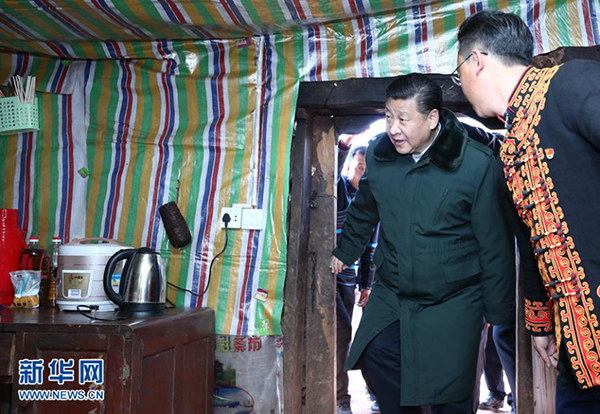 2018年2月11日上午,习近平在凉山彝族自治州昭觉县三岔河乡三河村贫困户节列俄阿木家中看望。 新华社记者 鞠鹏 摄