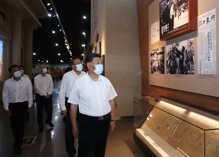 巢湖北岸,总书记参观了渡江战役纪念馆。纪念馆的主体建筑,犹如乘风破浪的巨型战舰,向着万里长江,展现出势不可挡的前进力量。
