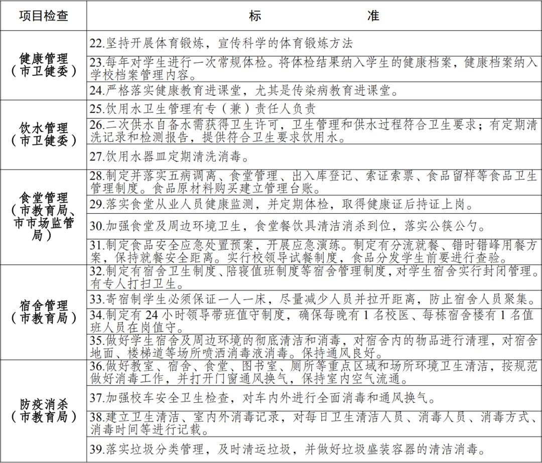 五、检查标准:《高等学校、中小学校、托幼机构秋冬季新冠肺炎疫情防控技术方案(更新版)》(国卫办疾控函〔2020〕668号)