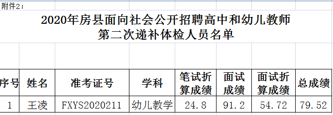 附件2:《2020年房县面向社会公开招聘高中教师和幼儿教师第二次递补体检人员名单》