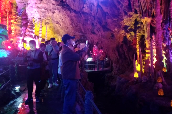 一到景区门口,景区工作人员举着“千里房县 感恩桂人 热烈欢迎广西人民畅游房县”的横幅表示欢迎。102名广西游客在工作人员的带领下,进入景区,欣赏野人洞天然的钟乳石洞穴奇观。造型各异的钟乳石引来游客纷纷拍照留念。