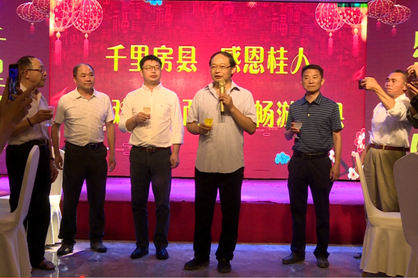 广西游客在晚宴上品房县黄酒、吃小花菇、黑木耳、听房县民歌,房县人民的盛情深深打动了每一位广西游客,他们也频频举杯,感受房县黄酒魅力,高兴之时,有位游客主动上台用广西民歌表达对房县的感谢!还有位游客现场作诗,表达对房县的赞誉和感谢!