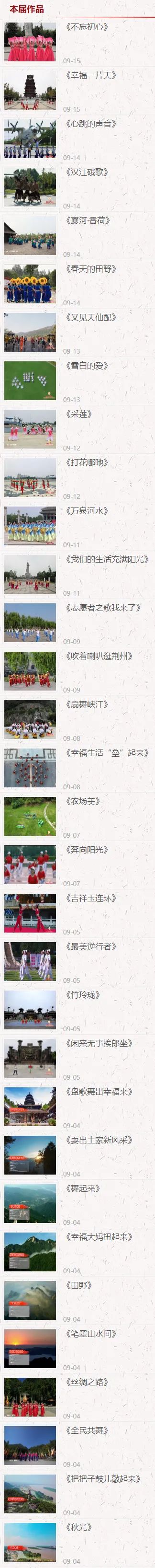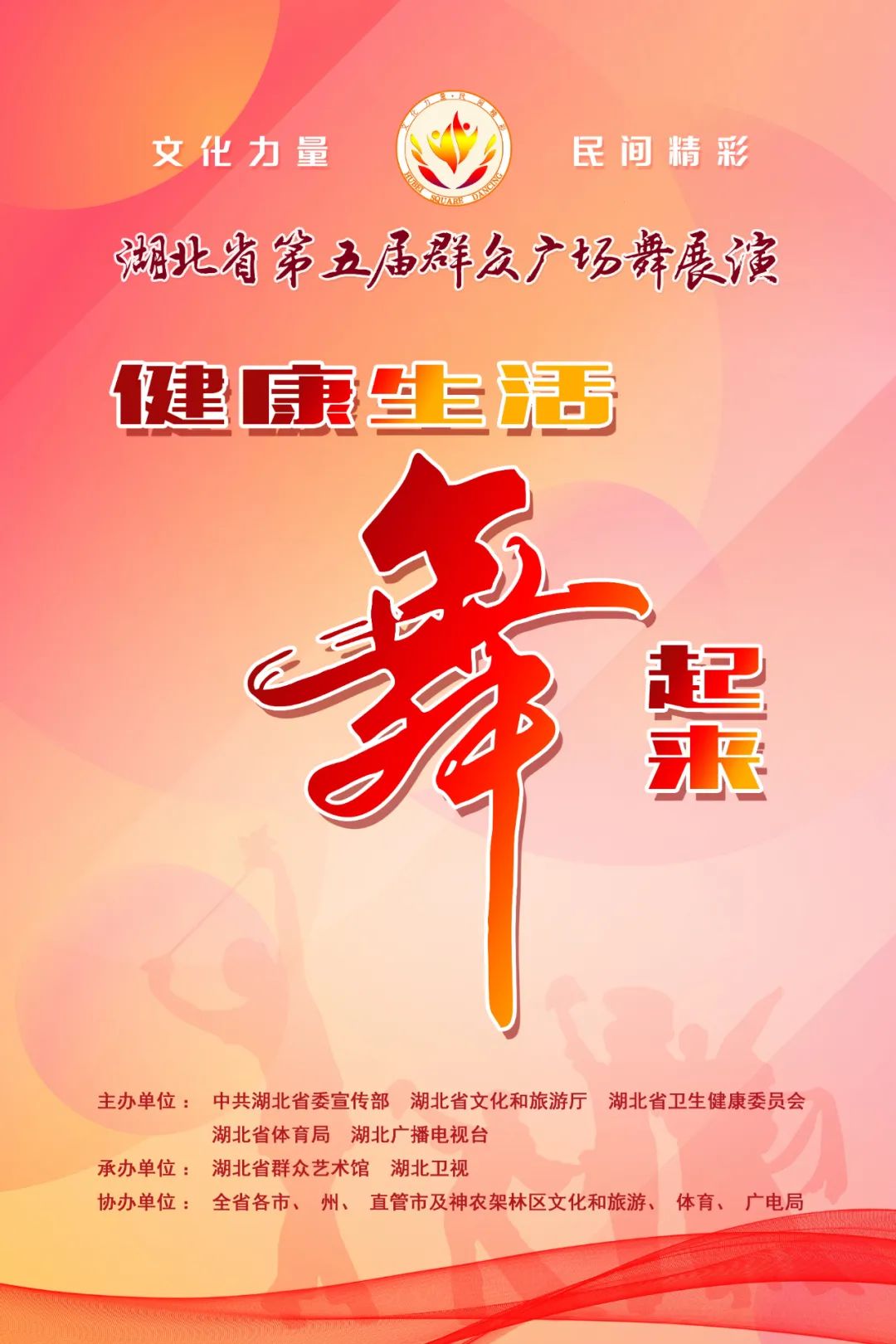 9月16日起,由中共湖北省委宣传部、湖北省文化和旅游厅、湖北省卫生健康委、湖北省体育局、湖北广播电视台主办,湖北省群众艺术馆、湖北卫视承办的“文化力量·民间精彩”全省第五届群众广场舞云展演网络投票通道正式开启。