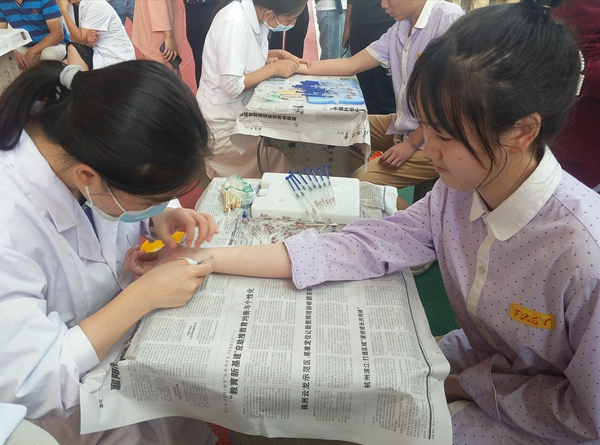 医务人员在为学生做结核菌素皮肤试验