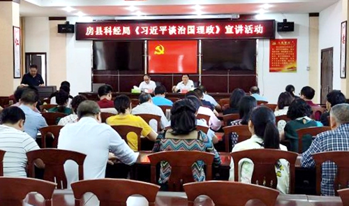 今日房县网讯 通讯员熊雪梅 昝鹏飞 报道:9月16日下午,房县科经局特邀请县委宣讲团成员、县委宣传部常务副部长赵礼江同志为全局党员干部作《习近平谈治国理政》第三卷宣讲报告。局机关、两办一局全体同志参加了报告会。