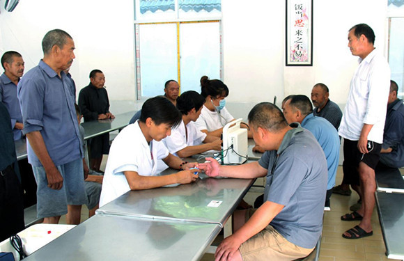 万峪河乡卫生院医生正在为群众免费体检