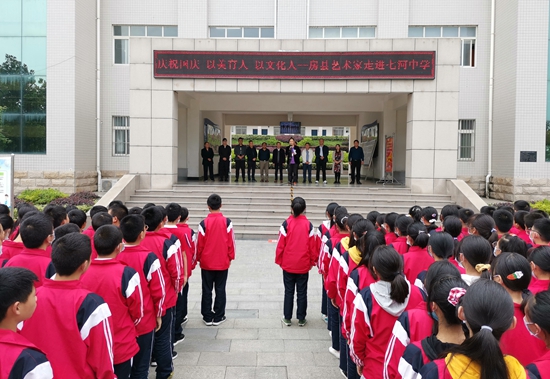 今日房县网讯 记者 吴永逸 报道:为进一步整合全县艺术教育资源,培养学生良好的审美情趣。9月29日,房县文联组织书画艺术家走进七河中学,为全体师生送来了一场丰盛的“文化艺术大餐”。
