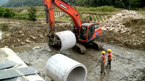 工人们正在加快临时便道建设
