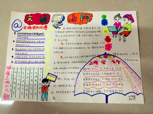 此次比赛,先由班级进行初选,通过前期宣传动员,全校共有1000余名学生积极参与其中,在各班老师的指导下,同学们认真搜集有关网络安全教育的资料,精心设计版面,创作出一幅幅构思独特、内容丰富、形式新颖的手抄报作品。然后,每个参赛班级推荐两幅作品参加全校复赛。上交的作品,可谓亮点纷呈:有文明上网宣言、健康上网小儿歌、文明上网公约、争当网络文明小天使......通过这些作品,大家既看到了学校进行网络安全知识宣传的成效,又看到了孩子们对于网络安全宣传的热情。