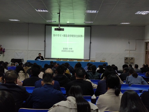 今日房县网讯 通讯员 高英 报道:为加强学校安全管理,有效预防和处置安全事故,保障师生生命财产安全,维护学校正常的教育教学秩序,10月16日下午,房县一中召开安全工作专题培训会,组织全体教职工系统学习了《湖北省学校安全条例》。