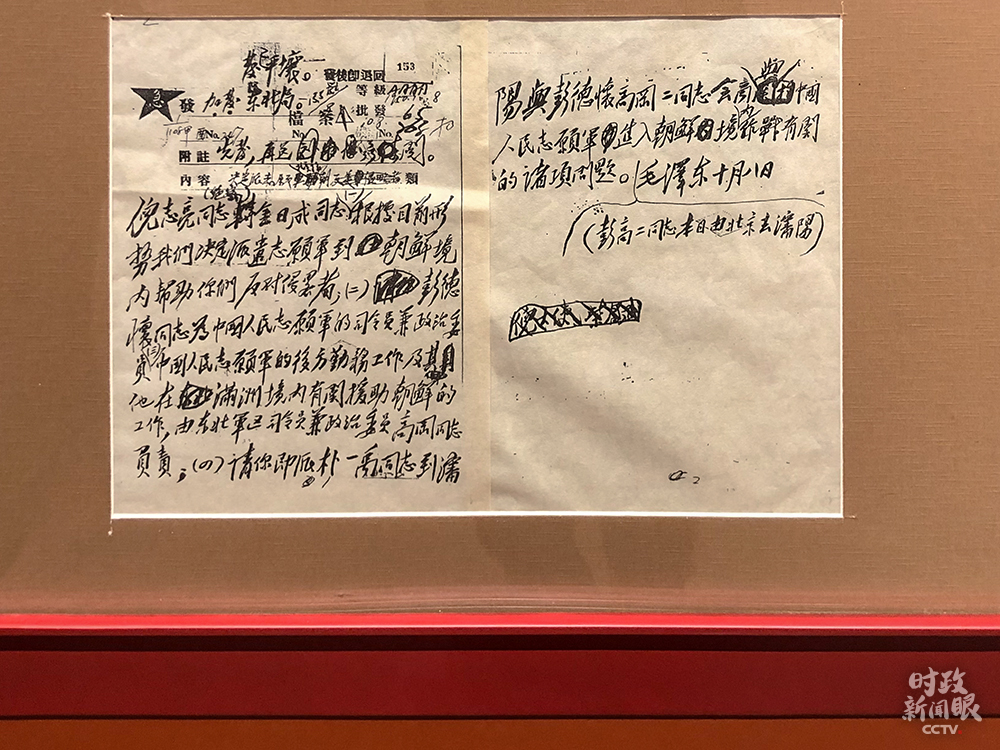 △1950年10月8日,毛主席致电金日成,告知中国政府决定出兵援朝。(总台央视记者许永松拍摄)