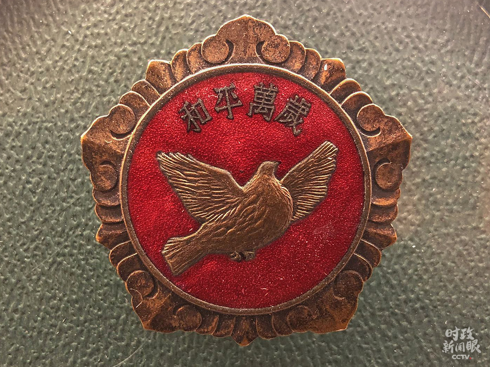 △这是第三届赴朝慰问团赠给志愿军的和平万岁纪念章。(总台央视记者许永松拍摄)