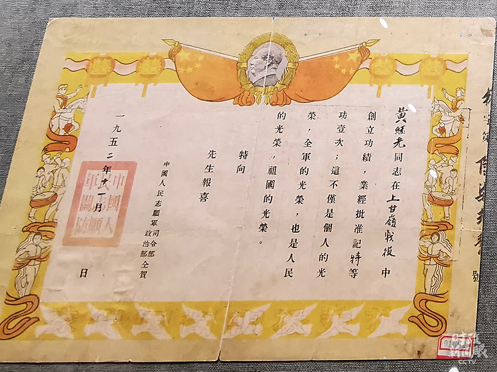 △黄继光在上甘岭战役中荣立特等功。(总台央视记者荆伟拍摄)