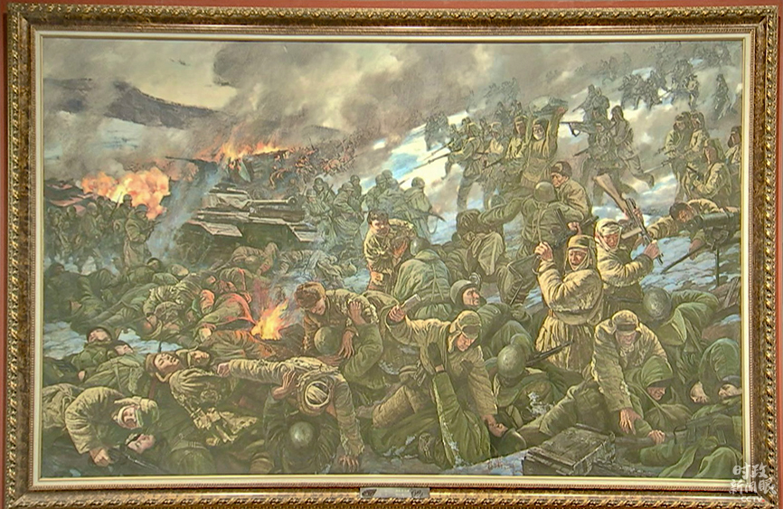 △重现激战松骨峰场景的油画(总台央视记者石丞拍摄)