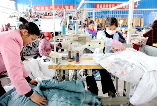 要素聚合,壮大工业经济块头。军店镇月明村、双柏村紧邻346国道,交通区位条件优越,但山水林田自然资源相对不足,产业发展长期缺乏后劲。为此,联合党委积极盘活闲置资产,将废弃的老旧厂房维修改造成为标准化生产车间,并给予减免租金的政策扶持,吸引了一批劳动密集型企业投资兴业。为帮助企业做大做强,联合党委狠抓营商环境建设,组织开展贫困劳动力技能培训100余人次,创办免费托幼服务的“四点半学校”2所,促进劳动力、资本、土地、技术等要素汇聚。“栽下梧桐树,引得凤凰来”。仅用半年时间,月明村卫浴加工车间二期工程顺利投产,双柏村新建扶贫车间2000平方米。截至今年10月,当地累计发展工业企业、车间共9家,牛哥卫浴、华语阁服饰两家企业有望实现进规。