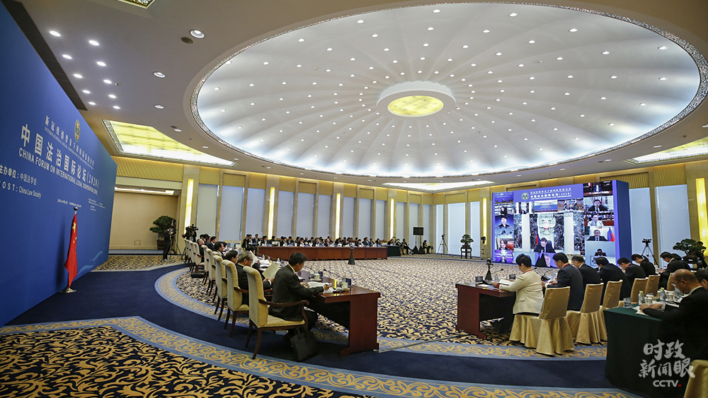 △近日,习近平主席向中国法治国际论坛(2020)致信,强调中国愿积极开展国际合作。论坛以“新冠疫情背景下的国际法治合作”为主题,来自中国、俄罗斯等18个国家和相关国际组织的代表通过视频方式参与。(来源于中国法学会官网)