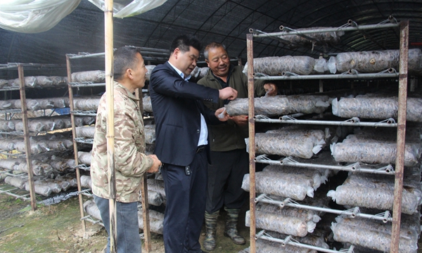 如何转变思路让群众从“想发展”到“敢发展”?乡党委审时度势发布动员令,在全乡成立食用菌产业党支部,乡党委主要领导担任支部书记,村级党组织领办专业合作社示范种植,创新“村社合一”模式,探索“支部+市场主体+园区+农户”的“四位一体”组织方式,村干部发挥“关键少数”作用领衔办产业,8名村“两委”干部、23名农村党员先行先试,当年村集体发展袋料食用菌40万袋,实现收入200余万元,为老百姓开了一个好头。
