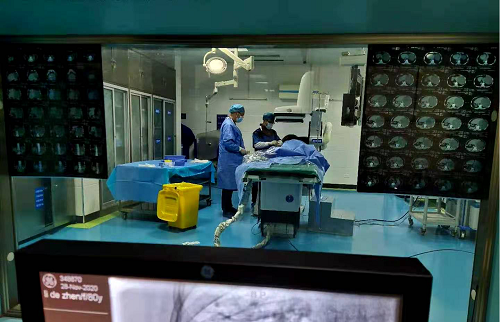 危急时刻,医务科牵头组织相关科室急会诊、评估后,经与患者家属沟通,决定为患者及时实施微创介入手术。