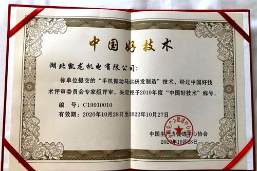 (今日房县网讯)记者14号在县经信局采访时了解到,位于东城工业园的湖北凯龙机电有限公司“手机振动马达研发制造”技术近日荣获“中国好技术”称号。