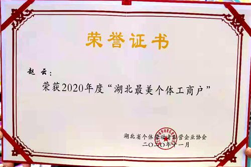 (今日房县网讯 )12月15日,记者从县个体劳动者私营企业协会了解到,日前在湖北省个体劳动者私营企业协会、省个体私营经济发展中心举办的2020年度“湖北最美个体工商户”通报表扬会上,十堰共有21名个体工商户荣获2020年度“湖北最美个体工商户”。