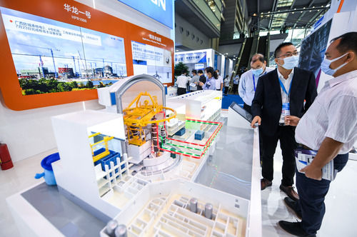 11月11日,在深圳举行的第二十二届中国国际高新技术成果交易会(高交会)上,参观者在中广核展台了解“华龙一号”核电技术。新华社记者 毛思倩 摄