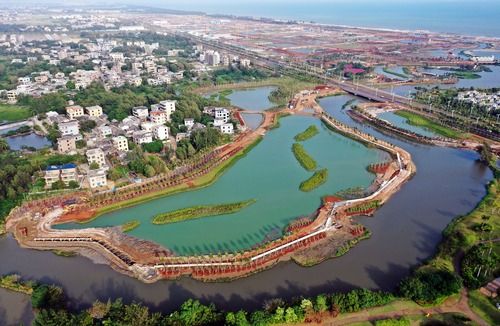 这是海口市江东新区芙蓉河综合治理工程(11月6日摄,无人机照片)。新华社记者 郭程 摄