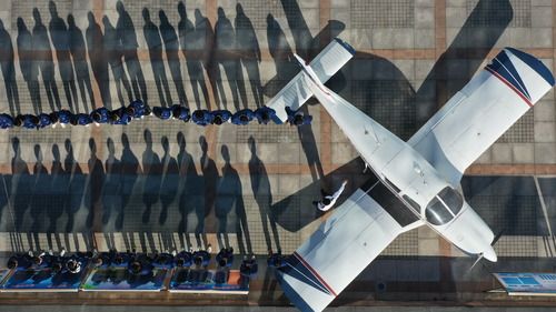 12月17日,河北省唐山市丰润区综合职业技术教育中心飞机维修专业教师在给学生上课(无人机照片)。新华社记者 牟宇 摄