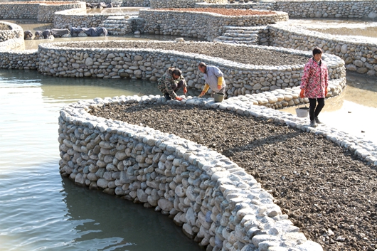 今日新闻网讯 通讯员 张启龙 唐雪松 报道:2020年12月20日,施工人员在“中国传统村落”房县马栏河军店下店子村老街段建设生态景观水利工程。