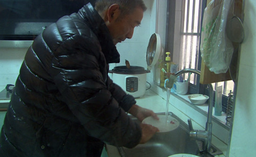 记者来到雷立柱老人家中的时候,他正在厨房洗碗。对于现在的用水条件他高兴地合不拢嘴,开心地告诉记者:“现在的水比原先的水好的多了,说个实实在在的话,这些户都说好,也不是我一个说好。八楼以前的水压力小,这八楼的水压力也大。”
