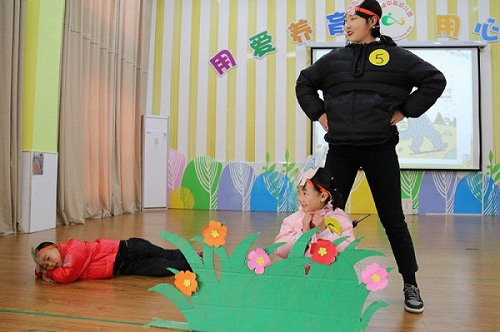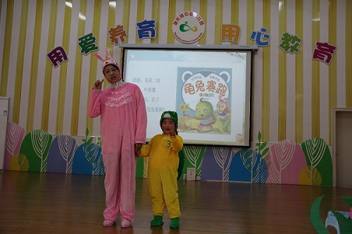 本次活动共有15个故事内容,全部取材于幼儿熟悉、喜爱的经典绘本,如诙谐有趣的《你看起来好像很好吃》、《龟兔赛跑》、《今天运气怎么这么好》,感人肺腑的《猜猜我有多爱你》、《妈妈我爱你》,温馨有趣的《捣蛋生日》、《古利和古拉》。孩子们身着可爱童趣的演出服,头戴形象诙谐的头饰,在鲜花、草地的童话世界里,化身为绘本故事里的人物:“胖小猪”、“小老鼠”、“小兔子”,惟妙惟肖,憨态可掬。大家的积极参与,亲子的默契表演,老师的热情加入,将一个个充满童趣的绘本故事进行了精彩的演绎,孩子们妙趣横生的模仿和童趣十足的表演,让现场所有人都感受到绘本表演带来的快乐,赢得现场阵阵掌声与喝彩。