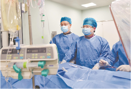 武汉亚心医院,医生在给患者做心脏支架植入手术