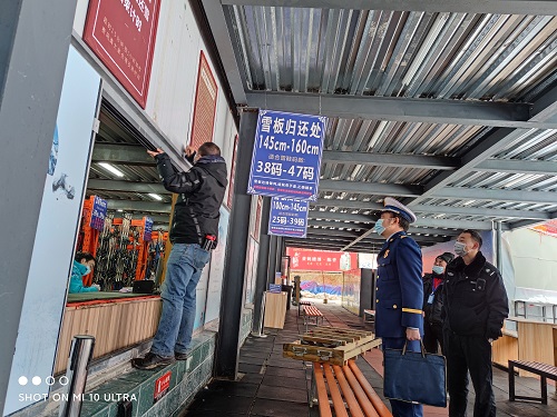 此次检查重点围绕冰雪游乐场所的安全告知、警示标识、临时用电、游乐设施、安全防护设施、应急预案、安全管理档案等内容进行。